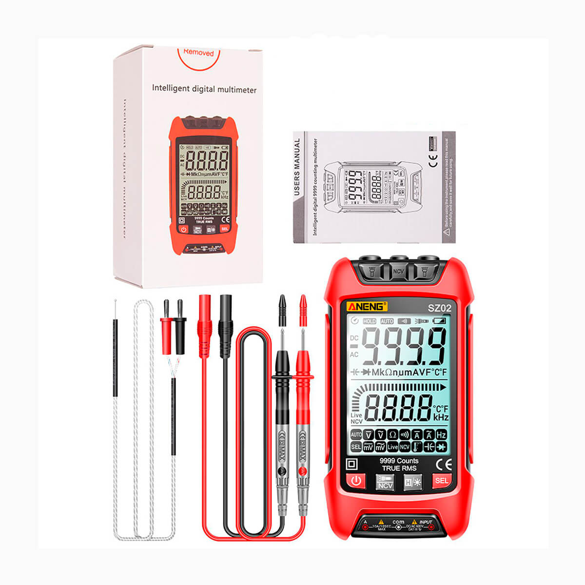 - Напряжение переменного тока600.0 мВ/9,999 в/99,99 в/999,9 В