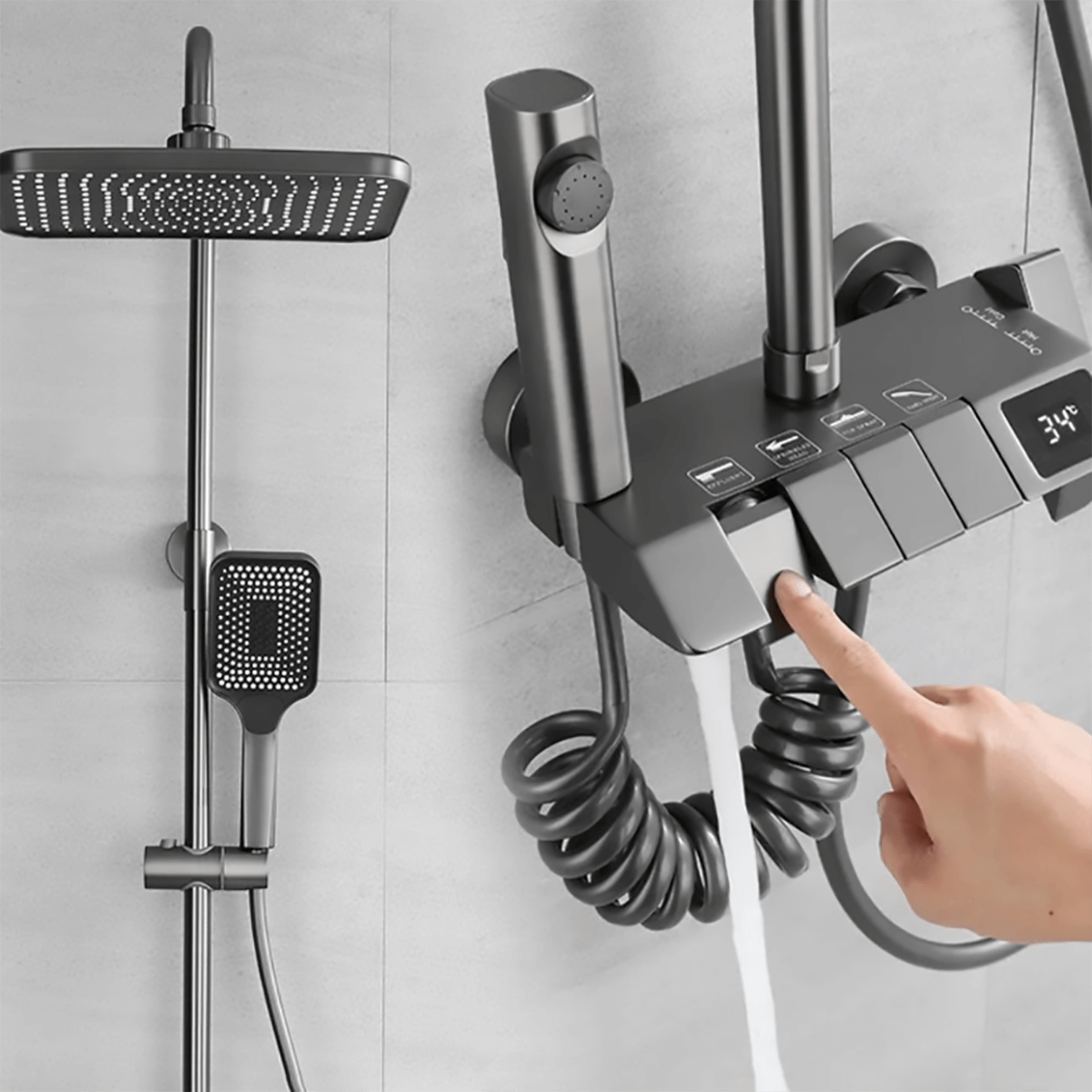 - Материалсмеситель для корпуса из латуни, насадка из ABS, душевая штанга из нержавеющей стали, шланг из ПВХ, распылитель из пластика